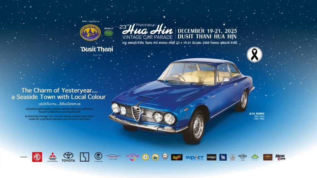 The Hua Hin Vintage Car Parade has been slightly renamed this year to “The Phetchaburi–Hua Hin Vintage Car Parade”, and has also got a theme – “The Charm of Yesteryear… A Seaside Town with Local Colour.” According to the website of the organisers, the Vintage Car Club of Thailand, the event will begin at the Auto Rendezvous Museum-Bangkok and continue to the Dusit Thani Hua Hin Hotel on Friday, December 19, 2025. The public will be able to view valuable classic and antique cars up close at the hotel grounds. In previous years the cars have been based at a variety of local resorts, as well as some being on show at local landmarks such as the historic (old) railway station; the original location for the event was what is now Centara Grand Beach Resort & Villas Hua Hin, formerly known as the Sofitel and originally built in the 1920’s as The Railway Hotel, and was used for the movie “The Killing Fields” in 1984.