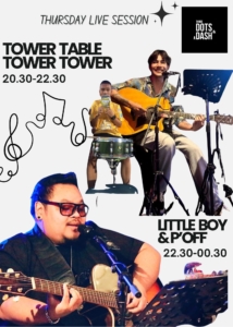 Thursday - 8:30 - to 10:30pm: Tower Table Tower Tower; 10:30pm to 12:30am: Little Boy & P'Off