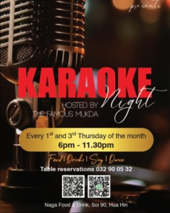 Naga is located on Hua Hin Soi 90 and is open Wednesday thru Monday from 11:30am until 11:30pm