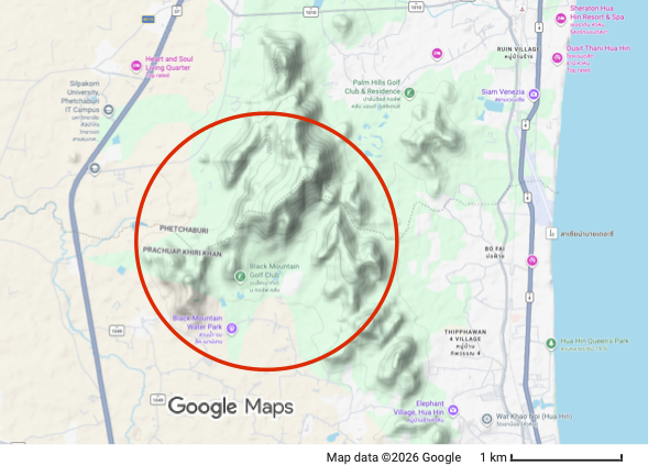 Residents across much of Hua Hin and Cha Am were affected by smoke and other air pollution emanating from several forest fires to the north west of Hua Hin, close to the Black Mountain golf course and water park. The Suomi NPP satellite detected three heat hotspots in the area (approximately shown on the map further down in this article), with one in the morning of Tuesday 27th January, and another two subsequently, which were followed up by reports from citizens. Officials from the Phetchaburi Provincial Office of Natural Resources and Environment, and an initial team of 20 officers from three different teams went to the area to contain and extinguish the fires, followed up with a further 25 personnel and a helicopter on the ensuing days.