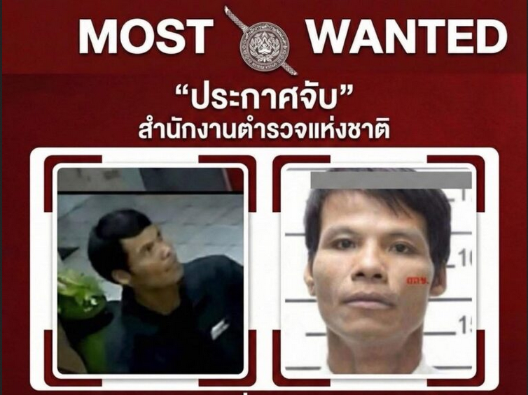 Above: Part of the poster issued by Thai Police before the suspect was arrested